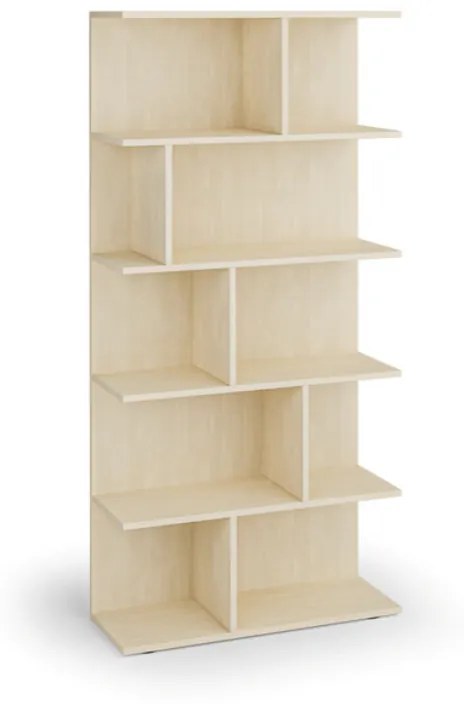 · dizajnová knižnica s nepravidelnými policami skvele doplní modernú kanceláriu aj obývaciu izbu · je vyrobená z laminovanej drevotriesky s hrúbkou 18 mm · hrany doskových prvkov sú olepené 1mm ABS hranou · nosnosť 10 kg na polici · rektifikačné klzáky s výškou 7 mm na vyrovnanie nerovností podlahy · otvorenú knižnicu (bez bočníc) je nutné kotviť