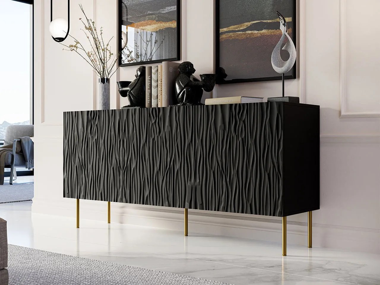 Moderné interiéry vyžadujú jedinečné prostredie. Komoda Lameller 152 je ideálnou voľbou pre izby s charakterom. Zaujímavý vzhľad zaujme originálnymi vzormi na prednej strane. Jeho hlavnými výhodami sú kapacita a štýl. Bude slúžiť ako základ pre skladovanie a miesto pre dekorácie.Prezentovaný model má vo vnútri praktické police. Otváranie je veľmi jednoduché a pohodlné vďaka systému „PUSH TO OPEN”. Jednoduché udržiavanie podlahy v čistote je možné, pretože tento variant je komoda na nožičkách. Zaujímavá kombinácia farieb a ich rôzne kombinácie ju predurčujú do podkrovia aranžmány a tie s nádychom glamour.Rozmery:šírka: 152 cm,výška: 75 cm,hĺbka: 43 cmPrevedenie:korpus: matná laminovaná doska, hrúbka 16 mm,predná strana: laminovaná MDF doska potiahnutá 18 mm PVC fóliou s viditeľnými frézami,okraj: polypropylén (biela komoda) alebo PVC (komoda čierna a wotan),obyčajné pánty,bez rukovätí: otvárací systém “PUSH TO OPEN”,kovové nohyZáruka: 24 mesiacov