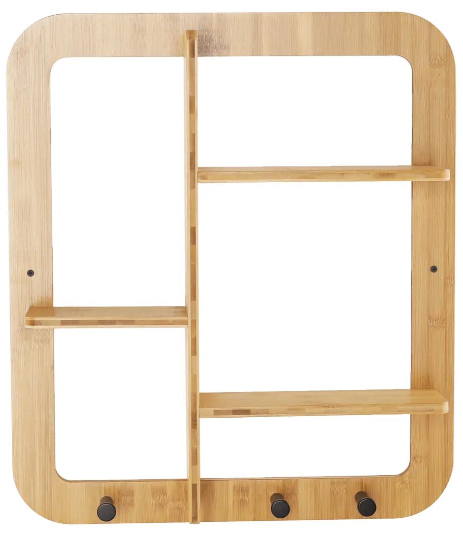 Dizajnová polička v bambusovom prevedení vás ľahko zaujme. Vaša stena vďaka nej bude vyzerať útulnejšie a vášmu domovu vytvorí kúzelnú atmosféru. Má oblý štvorcový tvar, a k tomu tri poličky skombinované so štyrmi háčikmi. Bambus je ľahký a veľmi odolný materiál.