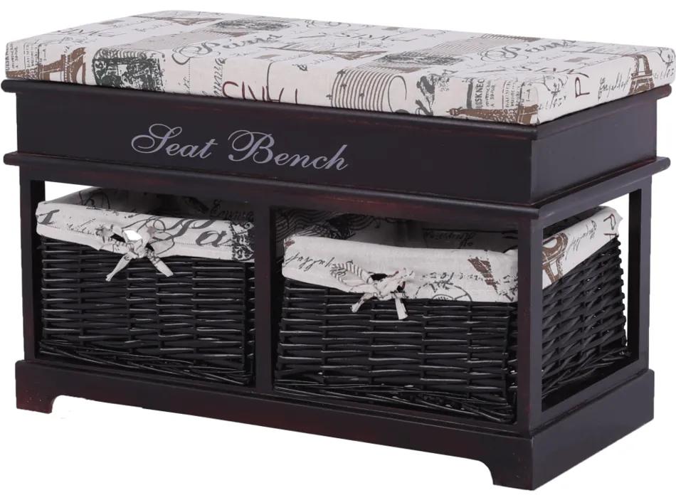 Elegantná lavica na sedenie v nadčasovom prevedení, na ktorej sa príjemne sedí, a navyše poskytne aj úložný priestor na drobné doplnky. Skvele doladí predsieň alebo chodbu. Vankúš so vzorom je súčasťou lavice. Materiál: drevo/prútie. Rozmery zásuvky: 31,3 x 21,2 cm (š x v)