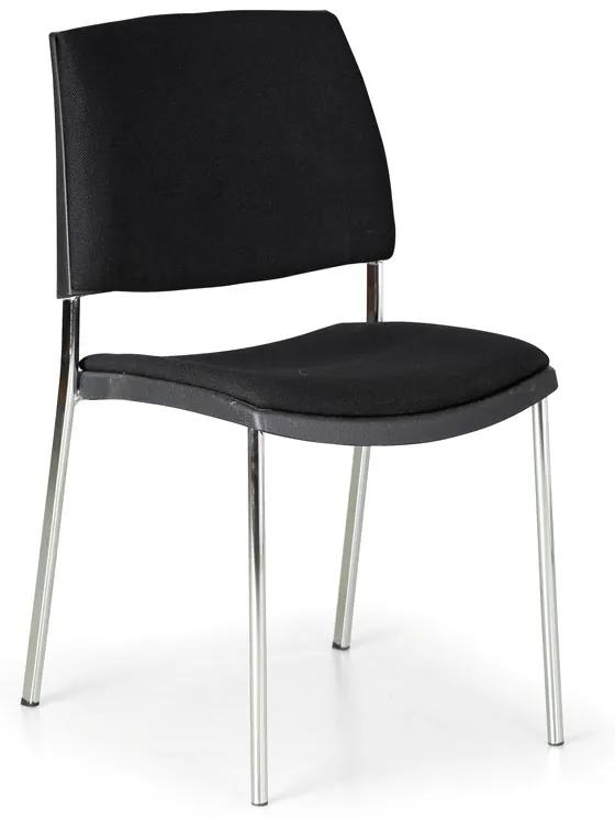 · stohovateľná konferenčná čalúnená stolička moderných tvarov · konštrukcia z oválnych a kruhových oceľových rúrok povrchovo upravených chrómovaním · spodné časti nôh sú vybavené plastovými koncovkami · sedadlo aj operadlo je bohato vyplnené hustou penou, je očalúnené kvalitnou látkou · nosnosť 120 kg · produkt je dodávaný v zloženom stave