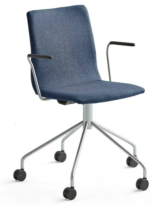 Elegantná konferenčná stolička s moderným krížom s piatimi kolieskami. Stolička má sedák a opierku z jedného kusa v odolnom čalúnení s hrubou výplňou. Stolička sa dodáva s opierkami rúk. Vďaka štýlovému dizajnu bude pútať pozornosť v každej konferenčnej miestnosti. Elegantná konferenčná stolička, ktorá do vašej zasadacej miestnosti vnesie módu a štýl. Má jednodielne tvarované sedadlo a operadlo s hrubou výplňou pre pohodlné sedenie aj pri dlhších stretnutiach. Zadná strana je mierne klenutá a sedadlo má oválnu prednú hranu pre väčšie pohodlie. Celý sedák s operadlom je čalúnený veľmi odolnou tkaninou. Štýlový kríž má 5 koliesok, ktoré sa ľahko pohybujú. Vďaka minimalistickému vyhotoveniu je stolička ľahká a veľmi jednoducho sa prenáša.