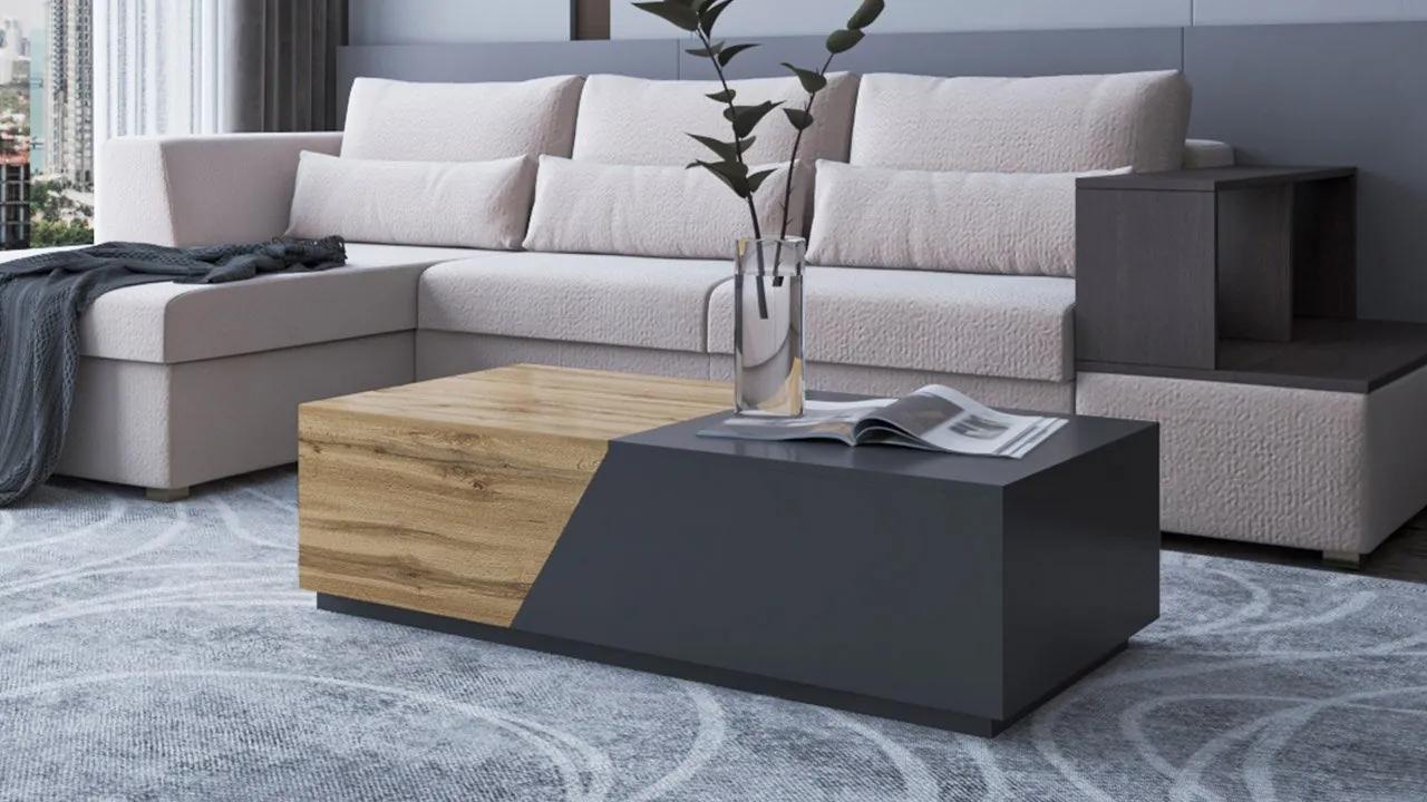 Konferenčný stolík Bekas rozhodne vyniká medzi ostatnými modelmi. Má veľkú šikovnú priehradku, ktorá vám umožní uložiť rôzne predmety – od diaľkových ovládačov, cez knihy, až po deky a vankúše. Vďaka nej máme všetky veci na dosah ruky. Vďaka otváraciemu a úložnému systému je konferenčný stolík do obývačky mimoriadne praktický a navyše má jednoduchý geometrický tvar. Tento model je dokonalou kombináciou funkčnosti a dizajnu. Moderný konferenčný stolík Bekas je dostupný v niekoľkých módnych farebných kombináciách. Kombinácia textúr dodáva nábytku jedinečný charakter.Rozmery:šírka: 124 cm,výška: 42 cm,hĺbka: 60 cmPrevedenie:drevotrieska 16 mm,ABS ráfik s hrúbkou 0,6 mm,posuvný systém s posuvnou stolovou doskou,žiadne rukoväte,maximálne zaťaženie: 30 kgZáruka: 24 mesiacov