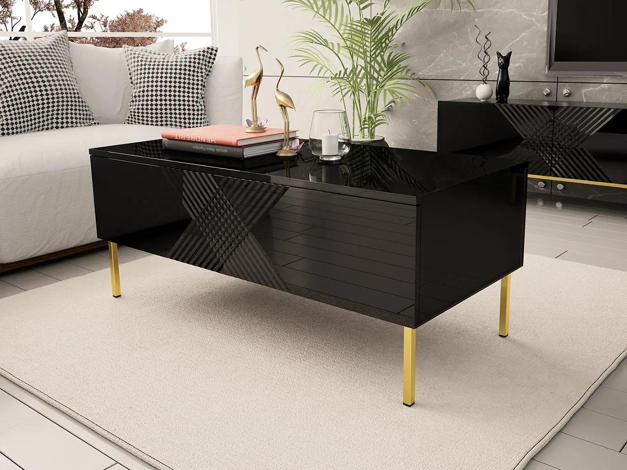 V štýlovo zariadenej obývačke je radosť byť. Farby, ktoré vyhovujú nášmu vkusu, funkčný nábytok a doplnky, ktoré dodávajú charakter, robia popoludňajšiu kávu inou. Túto najpokojnejšiu chvíľu verne sprevádza konferenčný stolík. Konferenčný stolík ponúka priestrannosť, keď naň položíme šálku americkej kávy, keď na jeho dosku položíme vázu s čerstvými kvetmi alebo keď siahneme po sladkostiach, ktoré prelomia horkosť kávy.Takýmto praktickým a zároveň módnym pomocníkom je konferenčný stolík Madrielle glamour. Jednofarebný masív je doplnený decentným dekorom na bokoch a elegantné sú aj svetlé nohy. Výhodou stola je priestranný úložný priestor pod hornou doskou. Je nenápadne maskovaná pevnými prednými stranami.Rozmery:šírka: 120 cm,výška: 49 cm,hĺbka: 55 cmPrevedenie:korpus: 16 mm hrubá matná laminovaná doska,čelá: 18 mm MDF doska s viditeľným frézovaním,okraje z PVC 0,6 mm,skryté pánty,plynové zdviháky,systém otvárania dverí PUSH TO OPEN,kovový rám zlatej farby, profil 20 mm,žiadne rukoväteZáruka: 24 mesiacov
