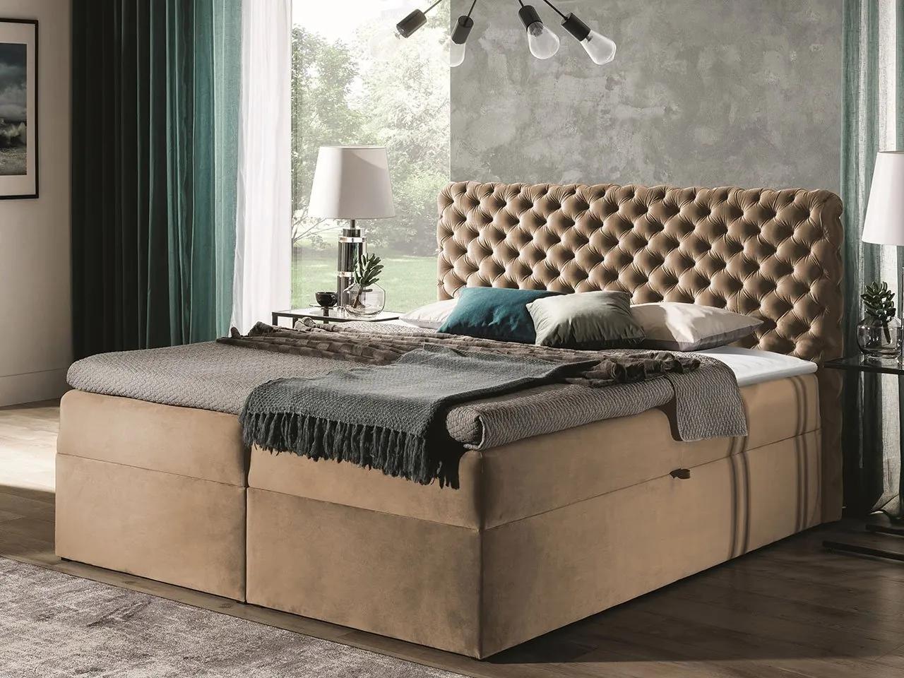 Kontinentálna posteľ Tigline je synonymom pohodlia, každodenného pohodlia a sofistikovaného štýlu. Čalúnenie, mäkké a príjemné na dotyk, je vyrobené z kvalitného zamatu. Zakrýva aj vysokú opierku hlavy postele. Charakteristickým prvkom modelu Tigline je hlboké prešívanie opierky hlavy.Vďaka niekoľkým vrstvám matracov príde spánok rýchlo a zaistí regeneráciu tela po náročnom dni. Hlavný matrac aj stredná vrstva postele majú strednú pevnosť. Vrchná vrstva je vyrobená z tej najvyššej kvality, ktorá má špeciálne fixačné gumy, ktoré zabraňujú pohybu matraca.Kontinentálna posteľ má až dve skrinky na posteľnú bielizeň. Optimálna hĺbka znamená, že do nich môžete uložiť oveľa viac ako len vankúše a periny.Dostupné rozmery:120: dĺžka: 213 cm, šírka: 126 cm, výška: 123 cm,plocha na spanie: 120 x 200 cm, rozmer jedného úložného priestoru (posteľ má dve): dĺžka: 198 cm, šírka: 56 cm, výška: 32 cm,140: dĺžka: 213 cm, šírka: 146 cm, výška: 123 cm,plocha na spanie: 140 x 200 cm, rozmer jedného úložného priestoru (posteľ má dve): dĺžka: 198 cm, šírka: 66 cm, výška: 32 cm,160: dĺžka: 213 cm, šírka: 166 cm, výška: 123 cm,plocha na spanie: 160 x 200 cm, rozmer jedného úložného priestoru (posteľ má dve): dĺžka: 198 cm, šírka: 76 cm, výška: 32 cm,180: dĺžka: 213 cm, šírka: 186 cm, výška: 123 cm,plocha na spanie: 180 x 200 cm, rozmer jedného úložného priestoru (posteľ má dve): dĺžka: 198 cm, šírka: 86 cm, výška: 32 cm,200: dĺžka: 213 cm, šírka: 206 cm, výška: 123 cm,plocha na spanie: 200 x 200 cm, rozmer jedného úložného priestoru (posteľ má dve): dĺžka: 198 cm, šírka: 96 cm, výška: 32 cmPrevedenie:drevotrieska 16 mm,posteľ nie je samostatne stojaca v priestore, operadlo je čalúnené pevnejším podhľadom z fibretexu,má dva boxy na úložný priestor – posteľ s dvoma boxami na úložný priestor štandardne na oboch stranách postele, zdvíhanie oboch častí vďaka pružinám, vďaka čomu je obsluha veľmi jednoduchá a ľahká,vstup: vreckové pružiny (matrac typu Pocket má 272 valcových pružín na 1 m2, čo umožňuje užívateľovi vychutnať si dobrú oporu tela – kostrový systém je dobre podopretý a prirodzené krivky tela sú zachované), vysoko elastická pena T30 (charakterizovaná mimoriadnou pružnosťou a priedušnosťou),hlavný matrac je stredne tvrdý,tvrdosť hlavného matraca (stredná vrstva postele): H3,nohy: plastové podložky,v hornej časti – pokrývka matraca (pokrývka Mandula):stredne tvrdé,hrúbka 2,5 cm,prešívaný poťah,topper vyrobený z najkvalitnejších hypoalergénnych materiálov:antibakteriálny a protiplesňový polyesterový úplet 200 g / m2,20 mm PU pena: vyznačuje sa vysokým stupňom hustoty, primeranou tvrdosťou a pružnosťou, nízkou náchylnosťou na deformácie, vysokým komfortom používania,netkaná textília z vysoko vláknitého polyesterového vlákna so 100 g / m2,rúno o hmotnosti 35 g / m2 vyrobené z vysoko kvalitnej netkanej textílie,82 g / m2 polyesterového mikrovlákna: priedušné, s vysokou absorpciou vlhkosti, antialergické, bariéra proti prachu a roztočom,topper má 4 odolné upevňovacie gumy, ktoré zabraňujú pohybu matraca,ozdoba: orezaná páskou po obvode,obojstranný – obe strany sú úžitková plocha,matrac sa odporúča otáčať každé 2-3 mesiace,možno prať na 30 ° CZáruka: 24 mesiacov
