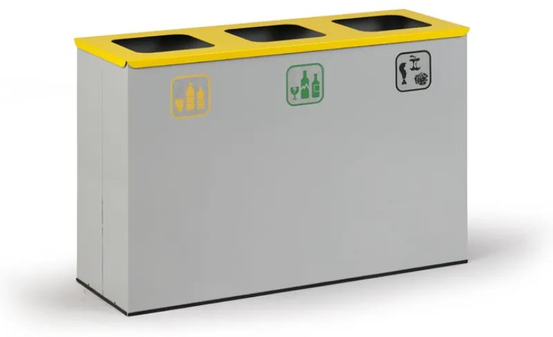 · kôš na triedený odpad vhodný do interiéru · z kvalitného kovu s lesklým povrchom · odnímateľný vrchnák s otvorom pre vhadzovanie odpadu · štvorec na vhodenie 200 x 200 mm · hrúbka plechu steny koša 0,8 mm · základňa vybavená gumovým lemovacím profilom · koše sú vybavené stojanmi s držiakom na odpadkové vrecia · súčasťou sú samolepky označujúce druh odpadu