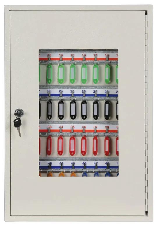 · skrinka na kľúče je dodávaná vrátane 50 kľúčových závesov na nastaviteľných policiach pre usporiadanie kľúčov · predvŕtané otvory a skrutky umožňujú pripevnenie schránky na kľúč priamo na stenu · montážny materiál súčasťou · schránka je uzamykateľná cylindrickým zámkom (vr. 2 kľúčov) · materiál: oceľová doska SPCC (valcovaná oceľ za studena) s práškovým lakovaním · sivá farba