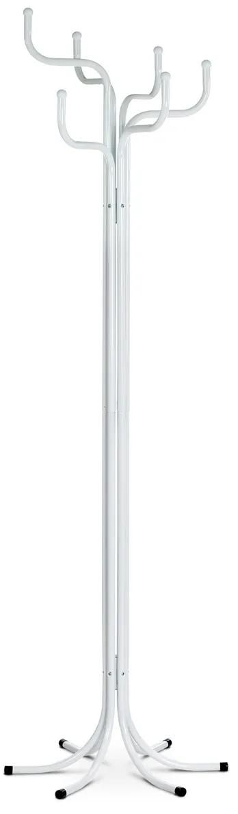 Kovový, voľne stojaci vešiak v minimalistickom štýle na prvý pohľad zaujme svojím nevšedným dizajnovým spracovaním. Stabilná a ľahká konštrukcia je zo šiestich kovových trubiek v bielom matnom laku a zároveň tvorí háčiky na zavesenie odevov.Závesné háčiky sú v šiestich výškových úrovniach a sú zakončené okrúhlymi plastovými záslepkami v bielej farbe. Nohy sú zakončené plastovými záslepkami, ktoré zároveň slúžia ako klzáky. Tým je obmedzená na minimum možnosť poškodenia podlahovej krytiny.Dodávaný je v demontovanom stave. Vďaka svojej hmotnosti a prevedeniu je ľahko prenosný.