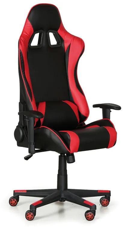 · kancelárske kreslo RACING s potahom z EKO kože · prídavný vankúšik pre opierku bedier a hlavy súčasťou balenia · hojdacia mechanika s možnosťou nastavenia náklonu operadla · sklon stoličky nastaviteľný v uhle 155° · plastové výškovo nastaviteľné podrúčky s možnosťou nastavenia lakťových opierok nahor a nadol · sedák so šírkou 53 cm a hĺbkou 52 cm, operadlo s výškou 85 cm · plastový kríž, nosnosť 150 kg · kolieska na mäkké podlahy (napr. koberce, linoleum atď.)