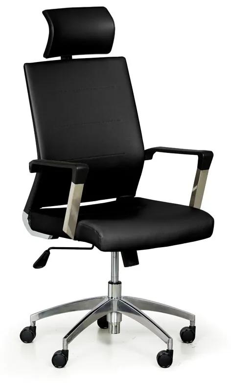 · kancelárske kreslo ELITE s poťahom z EKO kože · hojdacia mechanika s nastavením protiváhy · plastové opierky na oporu lakťov · sedadlo so šírkou 50 cm a hĺbkou 52 cm, operadlo s výškou 58 cm · hliníkový kríž, nosnosť 150 kg · kolieska na tvrdé podlahy (napr. plávajúce podlahy, dlaždice, betón atď.) · výškovo nastaviteľná opierka hlavy · pevná bedrová opierka na oporu bedrovej chrbtice