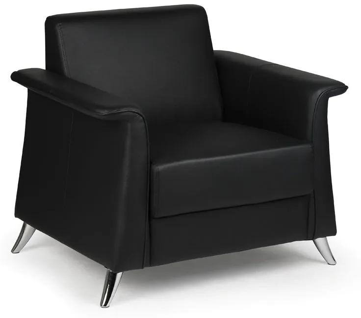 · elegantné kreslo čalúnené do kvalitnej ekologickej kože · výplň sedadla tvorí pena s vysokou hustotou · robustná drevená konštrukcia z tvrdého borovicového dreva · štyri robustné oceľové nôžky s povrchovou úpravou chrómovaním · plastové krytky pre ochranu podlahy pred poškriabaním · nosnosť 130 kg