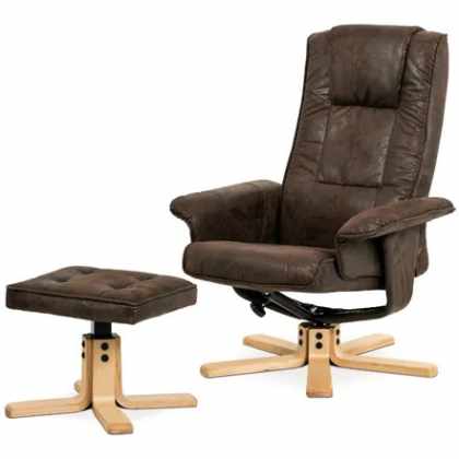 TV kreslo + taburet, hnedá látka v dekore brúsenej kože, preglejka, prírodný ods TV-5010 BR3