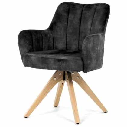 Stolička jedálenská, otočný mechanizmus 360 °, taštičkové pružiny v sedáku, čierna látka, noha masív dub HC-D7188 BK4