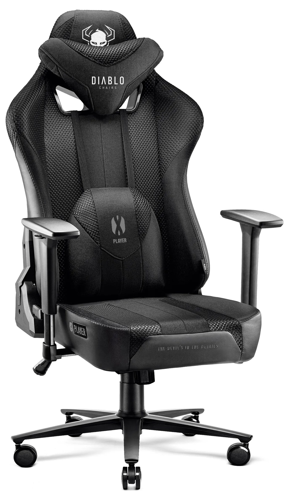 LÁTKOVÉ HERNÉ KRESLODIABLO X-PLAYER 2.0ČIERNE: KING SIZEMáte pred sebou inovatívne herné kreslo Diablo X-Player, ktoré je vyrobené z látky. Ak hľadáte spoľahlivého spoločníka na každú hru, ktorý dokonale podporí vaše držanie tela a šikovne sa prispôsobí vašej siluete a každému jej pohybu, mali by ste sa bližšie pozrieť na tento výnimočný model. POSTURÁLNA PODPORAVďaka profilovanej opierke hlavy zaujmete bezpečnú a ergonomickú polohu pri každom opretí hlavy. Vyhnete sa škodlivému vybočeniu krku dopredu a vaša krčná časť chrbtice bude dokonale chránená pred vznikom alebo zhoršením posturálnych chýb.Ergonomický bedrový vankúš zabezpečuje správnu polohu spodnej časti chrbta. Vďaka tomu je sedenie mimoriadne pohodlné a bezpečné pre vašu chrbticu.Výplň z pamäťovej peny v opierke hlavy a bedrovom vankúši sa prispôsobí tlaku a prirodzeným kontúram vášho tela a vráti sa do pôvodnej polohy, keď vstanete zo stoličky. Pružnosť peny zaručuje ergonómiu a úplné pohodlie. SPOĽAHLIVÉ MATERIÁLYOdolná sieťovina Diablo Honeycomb™ a tkanina EcoFiber™ vytvárajú výnimočne vzdušné čalúnenie, vďaka ktorému sa aj v najhorúcejších dňoch vyhnete škodlivému prehriatiu.Bočná časť sedadla a operadla je potiahnutá hladkou a oderu odolnou ekokožou HDS™, vďaka ktorej stolička vyzerá veľmi výrazne.Silné šitie z materiálu Nylon™ LV3 zabezpečuje správne napnutie čalúnenia, takže sedadlo Diablo X-Player si zachová svoj vynikajúci vzhľad po mnoho rokov.Vďaka HR pene, ktorá vypĺňa celú masívnu konštrukciu sedadla, je sedadlo Diablo X-Player mimoriadne pohodlné a mäkké.Široké sedadlo Dual Layer™ je vyrobené z dvojitej vrstvy peny, ktorá zaručuje výnimočné pohodlie, dôležité najmä počas dlhých hodín práce, štúdia alebo hrania hier. BALÍK ÚPRAVSystém Butterfly Tilttech™ umožňuje jemne nastaviť výšku sedadla pre ešte väčšie pohodlie počas hrania a zaujatie prirodzenej a ergonomickej polohy.Mäkké penové lakťové opierky Armtech™ Hybrid SoftTouch sa dajú nastaviť v troch úrovniach, aby vyhovovali vašej výške a dĺžke rúk. Správne nastavenie zaistí pohodlie, podoprie ramená, predlaktia a zápästia a stabilizuje celé držanie tela.Mechanizmus Tilttech™ Gear umožňuje nastaviť uhol sklonu operadla a zabudovaný systém Tilttech™ Swing vám dáva možnosť relaxačného hojdania v kresle. Čaká na vás pohodlie a potešenie! PEVNÁ ZÁKLADŇAVďaka robustnej päťhviezdičkovej základni je poloha sedenia vždy úplne bezpečná a stabilná, a to aj počas hojdania alebo intenzívneho pohybu.Gumené kolieska PFC™ 360 chránia povrch podlahy pred poškriabaním a poskytujú stoličke potrebnú pohyblivosť.Vďaka zdvíhaciemu mechanizmu Air Damper™ System je kreslo výnimočne mäkké a pohodlné. Správne odpruženie zaručuje pohodlie pri každej hre aj pri každodennej práci alebo štúdiu.Diablo X-Player vo verzii KING SIZE je nepostrádateľným spoločníkom každého hráča. Táto inovatívna herná stolička vám poskytne zdravotný komfort prispôsobený vašej postave a aktívne sa postará o vašu bezpečnosť. Nechajte ho zmeniť vašu každodennú prácu alebo štúdium, ako aj každú hru.
