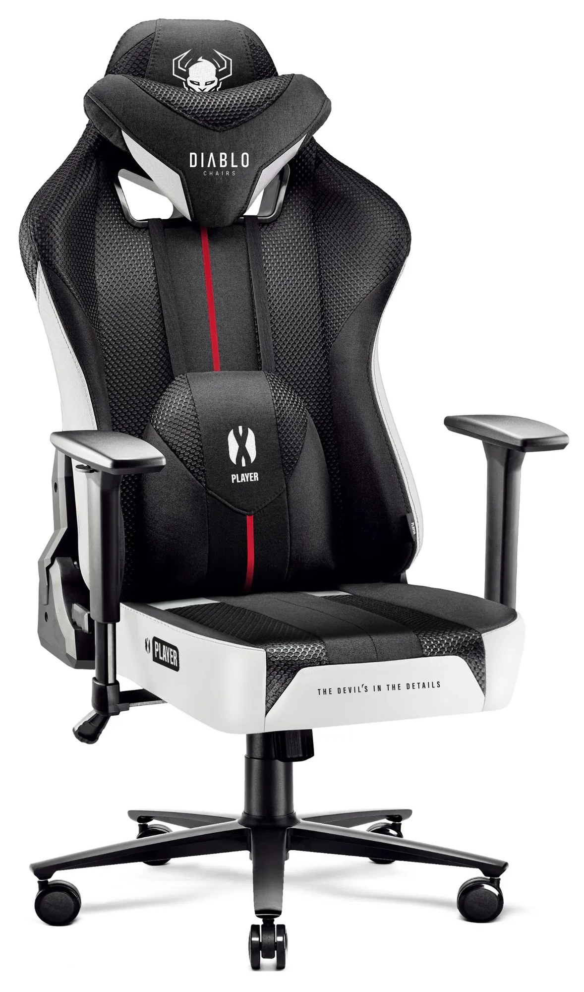 LÁTKOVÉ HERNÉ KRESLODIABLO X-PLAYER 2.0BIELO-ČIERNE: NORMAL SIZEDiablo X-Player je inovatívne látkové herné kreslo, ktoré vás prekvapí rozsiahlym balíkom technických riešení podporujúcich zdravie a praktickými úpravami. Dokonale podporí vaše držanie tela počas každodennej práce, štúdia alebo herných maratónov a poskytne vám dostatok pohodlia. Spoznajte tento výnimočný model lepšie! SPOĽAHLIVÉ ČALÚNENIEDiablo X-Player je vyrobený z tých najkvalitnejších materiálov. Odolná sieťovina EcoFiber™ a Diablo Honeycomb™ s priedušnou voštinovou štruktúrou zabezpečujú potrebnú cirkuláciu vzduchu na účinnú ochranu siluety pred negatívnymi účinkami vysokých teplôt. Boky sedadla a operadla sú potiahnuté hladkou ekokožou HDS™. Takéto spoľahlivé materiály a pevné švy Nylon™ LV3 zaručujú správne napnutie čalúnenia a dlhodobo vynikajúci vzhľad. OPIERKA HLAVY A BEDROVÝ VANKÚŠVďaka ergonomickému bedrovému vankúšu a tvarovanej opierke hlavy bude vaša chrbtica dokonale chránená počas celého sedenia. S každou opierkou chrbta zaujmete bezpečnú, ergonomickú a pohodlnú polohu, ktorá zabráni vzniku alebo zhoršeniu problémov s držaním tela. Opierka hlavy a bedrový vankúš sú vyrobené z výnimočne pružnej pamäťovej peny, ktorá sa prispôsobí tvaru a tlaku vášho tela. To vám poskytne väčšie pohodlie a ešte účinnejšiu podporu pri udržiavaní správneho držania tela. SPOĽAHLIVÁ HR PENAMäkká HR pena vypĺňajúca celé pevné telo stoličky zaručuje mimoriadne pohodlnú polohu aj po hodinách hrania, práce alebo štúdia za stolom. Ešte väčšie pohodlie a dodatočné polstrovanie poskytuje široký sedák Dual Layer™, ktorý je vyrobený z dvojitej vrstvy peny. Spodná vrstva je tvrdšia a vrchná mäkšia, takže Diablo X-Player je nepostrádateľným spoločníkom pri každej hre. NASTAVENIE VÝŠKYMechanizmus Tilttech™ Butterfly umožňuje jednoduché nastavenie sedadla nahor a nadol. Správnym umiestnením vzhľadom na stôl alebo výšku získate ešte väčšie pohodlie a prirodzene zaujmete ergonomickú polohu. Zabudovaný systém Tilttech™ Swing umožňuje uvoľnený hojdací pohyb a mechanizmus Tilttech™ Gear umožňuje jednoduché nastavenie uhla operadla. Čaká na vás maximálne pohodlie, vďaka ktorému je práca na diaľku, elektronické vzdelávanie alebo hranie hier tak pohodlné ako nikdy predtým. NASTAVITEĽNÉ LAKT’OVÉ OPIERKYOdolné lakťové opierky Armtech™ Hybrid SoftTouch poskytujú mimoriadne pohodlnú oporu predlaktia a horná časť lakťovej opierky je pokrytá mäkkou penou. Vďaka trojstupňovému nastaveniu sa dajú prispôsobiť dĺžke vašich rúk a tela, čím účinne odľahčia vaše predlaktia, zápästia a ramená a stabilizujú vaše držanie tela. PEVNÁ ZÁKLADŇASilná päťhviezdičková základňa zaisťuje stabilnú polohu aj pri prudkých pohyboch. Základňu dopĺňajú agilné gumové kolieska PFC™ 360, ktoré zabezpečujú dokonalú mobilitu a chránia podlahu pred poškriabaním. Vďaka zdvíhaciemu mechanizmu Air Damper™ System herné kreslo Diablo X-Player dokonale reaguje na každý pohyb tela. Správne polstrovanie zaručuje mäkkú a pohodlnú polohu. Diablo X-Player je skutočnou revolúciou medzi hernými stoličkami. Spoliehajte sa na spoľahlivé a overené riešenia!