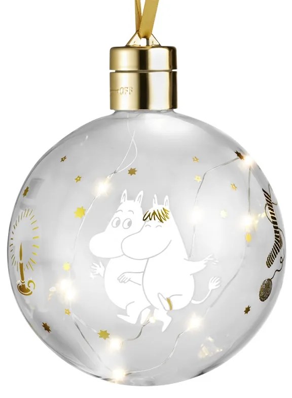 Dizajn: Tove Jansson Sklenená vianočná ozdoba s LED osvetlením nesie milý motív rozprávkových muminkov od slávnej fínskej autorky Tove Jansson. Ozdoba je ideálna na zavesenie na vianočný stromček alebo na vetvičku vo váze a zaručene u vás doma vyčaruje rozprávkové Vianoce. Ozdobu zapnete a vypnete otočením hornej časti. Balené v darčekovej krabičke. ROZMERYPriemer 11 cm MATERIÁLSklo, saténová šnúrka na zavesenie BATÉRIABatéria nie je súčasťou balenia (typ batérie CR2032) ORIGINÁL MOOMIN CHARACTERS™Výrobok nesie ochrannú značku Moomin Characters™, ktorá garantuje, že sa jedná o originál z licencovanej kolekcie.