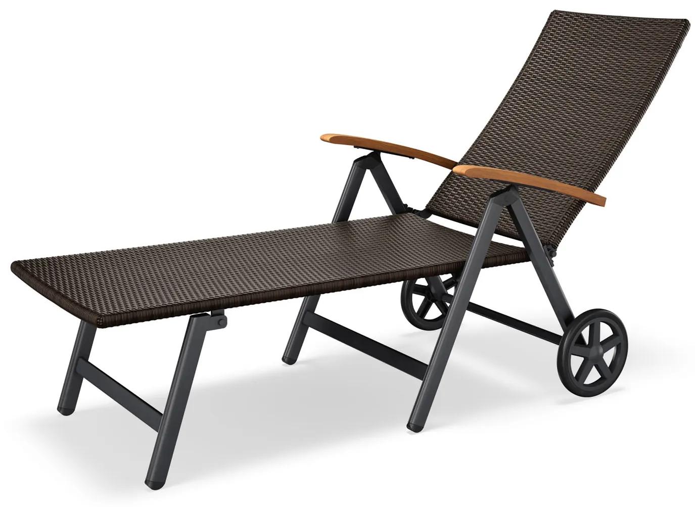 Štýlové ležadlo s dlhou životnosťou na balkón; terasu alebo do záhrady Obojstranný výplet s jednoduchou údržbou vo vzhľade ratanu s vysokým komfortom ležania Opierky rúk z impregnovaného tvrdého dreva Operadlo nastaviteľné do 6 polôh Ľahká hliníková konštrukcia s práškovou farbou Stabilná sklápacia mechanika s bezpečným postojom Veľké kolieska vhodné do záhrady Nohy s robustnými ochrannými koncovkami šetrnými k podlahe Ideálne v kombinácii s ďalším nábytkom značky Livarno Home Úspora miesta vďaka zloženiu Pevné; odolné proti vplyvom počasia, s nenáročnou údržbou Jednoduché čistenie Farba: hnedá Max. nosnosť: 110 kg Materiál Hliník; plast, eukalyptové drevo Rozmery Celkové: cca 56 x 192 x 40 cm (Š x D x V) Rozmery sedacej plochy/plochy na ležanie: 120 x 56 cm (D x Š); operadlo: 74,5 x 56 cm (D x Š) Hmotnosť cca 10 kg