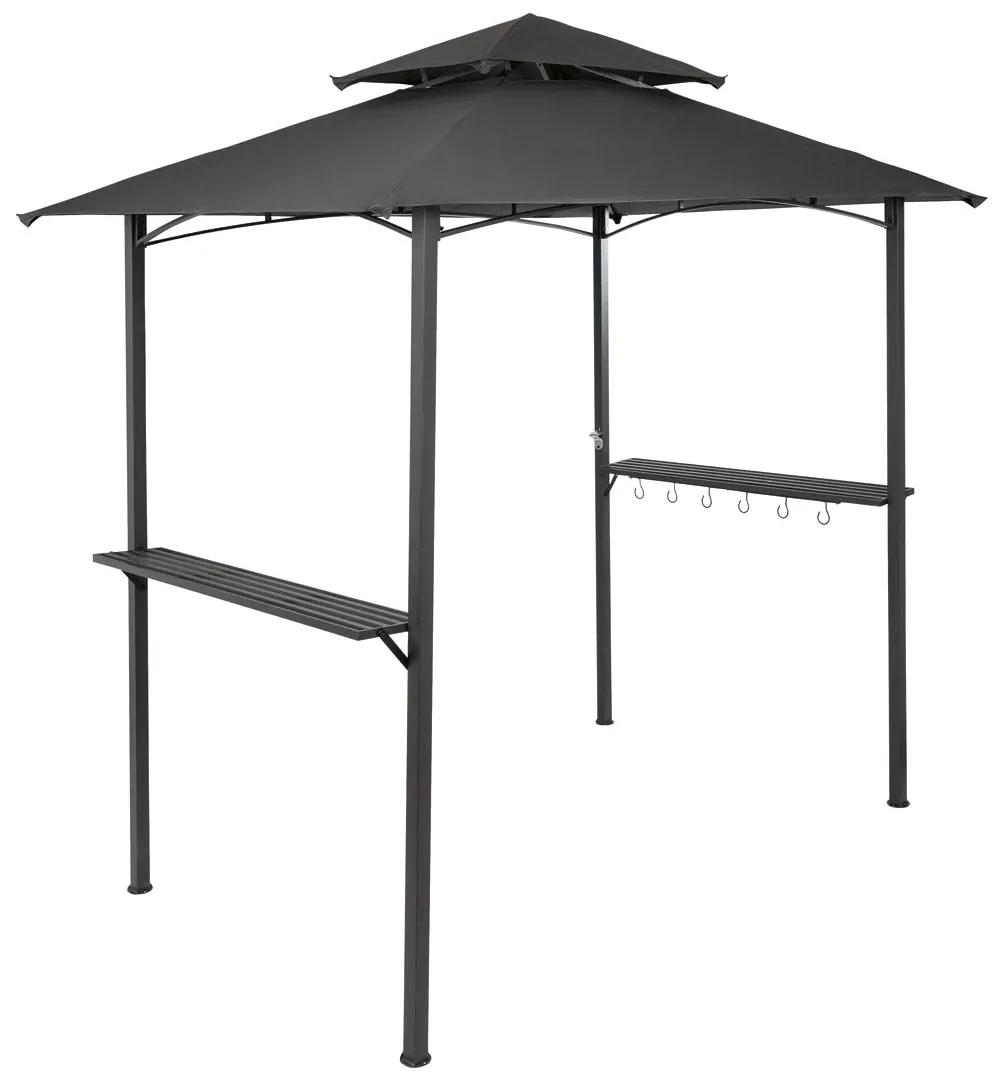Odkladacia plocha a 6 háčikov Odolný voči UV žiareniu a poveternostným vplyvom Vrátane 8 kovových vidlíc Materiál Oceľ s práškovým nástrekom Polyester Rozmery cca 243 x 260 x 152 cm (Š x V x H) Hmotnosť cca 21,7 kg