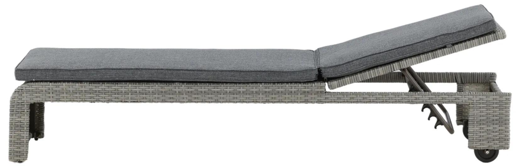 Exteriérové lehátko v modernom sivom dizajne.
