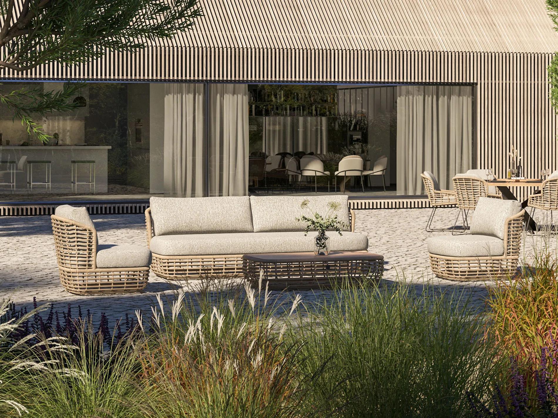 Pohodlná sedacia súprava Lugano z prvotriedneho umelého ratanu v elegantnom dizajne.