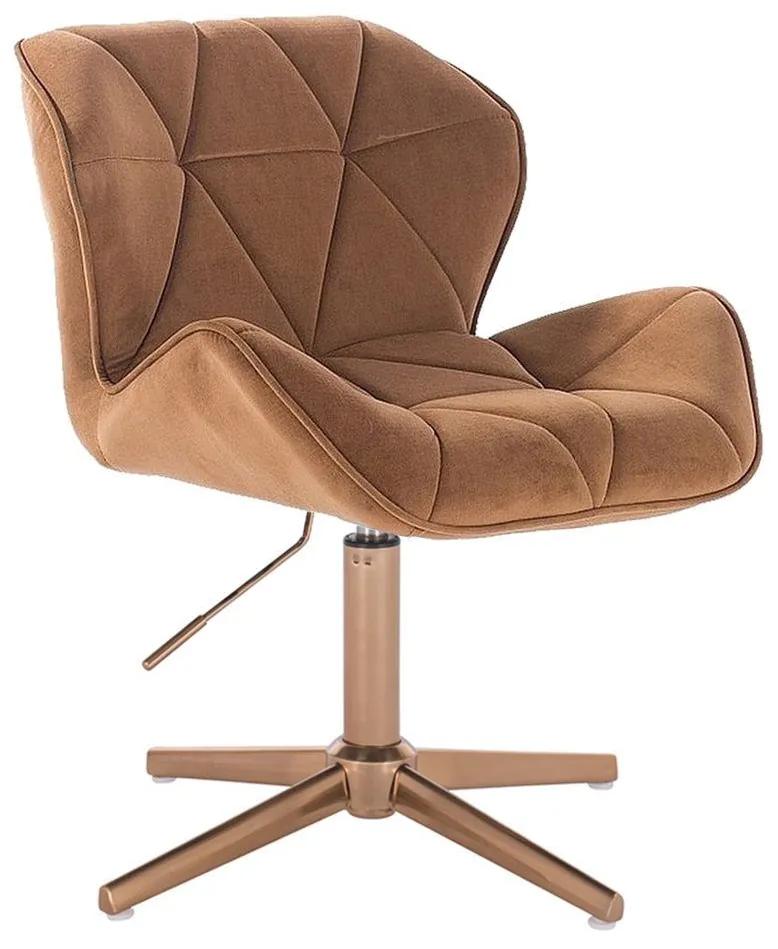 Stolička MILANO VELUR na zlatom kríži Elegantná netradičná stolička, ktorá kombinuje pohodlie s luxusným dizajnom. Dokonale splní svoju úlohu v moderných aj tradičných interiéroch, kanceláriách a kozmetických salónoch. Sedák aj opierka chrbta sú polstrované a potiahnuté prešitým semišom. Poťah – Velúr – zamatovo hebký, silný, odolný a ľahký na údržbu. Pre velúr alebo semiš je typický jeho hebký a mäkký povrch. Jedná sa o materiál, ktorý je silnejší, odolnejší a jednoduchšie na údržbu ako bežné tkaniny. Oceľová konštrukcia je výškovo staviteľná, zaručuje dokonalú stabilitu stoličky. – regulácia výšky na pneumatickom pieste – otočná o 360 ° – Rozmery sedadla na obrázku – minimálna výška sedadla od zeme – 40 cm – maximálna výška sedadla od zeme – 54 cm – Nosnosť 120 kg