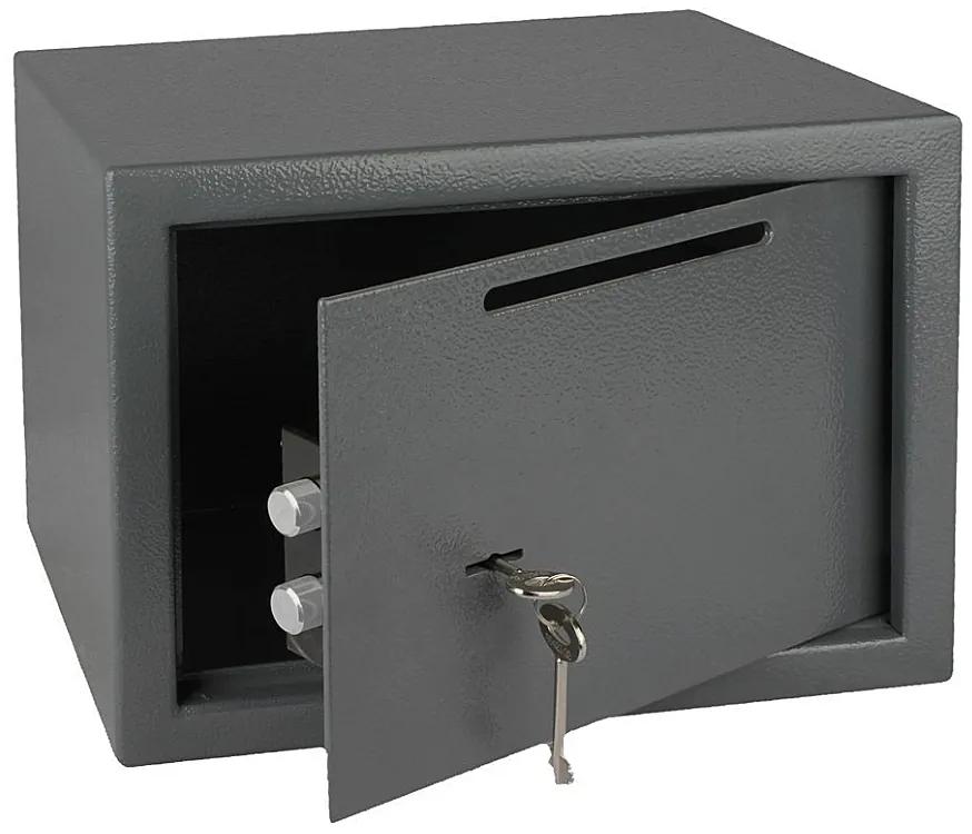 Oceľový trezor s mechanickým zámkom.