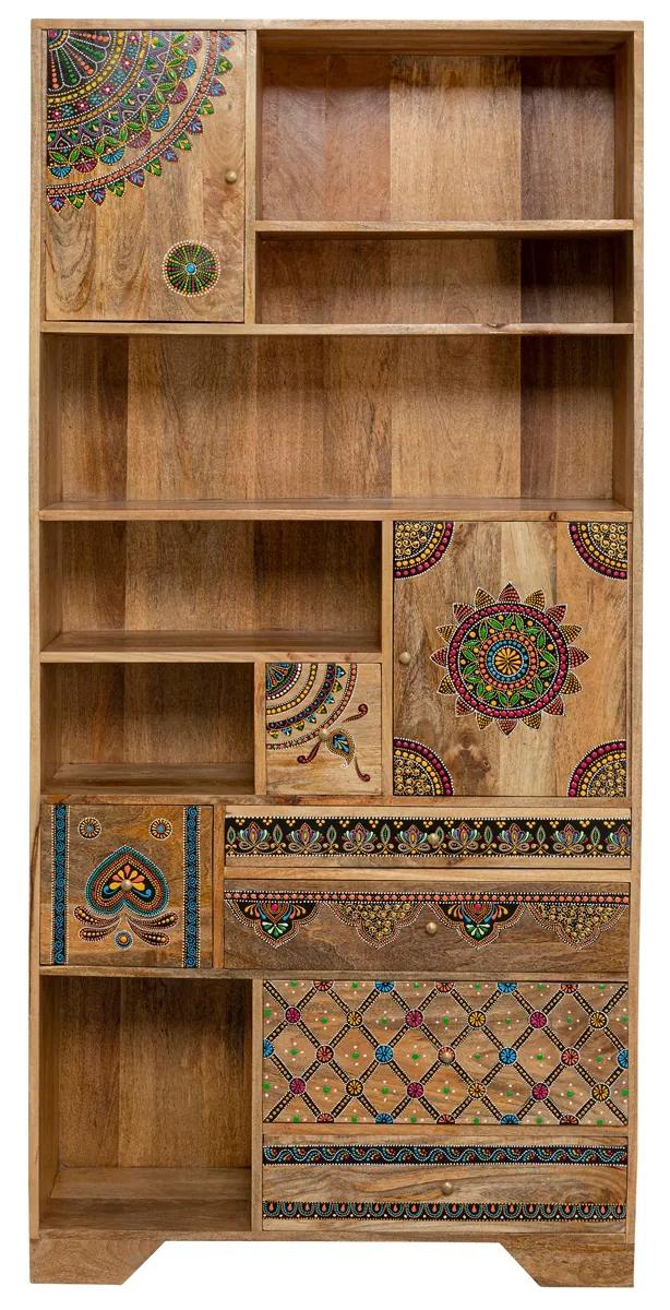 Knižnica v etno štýle z mangového dreva s hravým jemným zdobením.