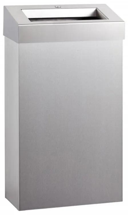 · objem 27 litrov · vybavený snímateľným krytom so zúženým otvorom · povrchová úprava : mat · možnosť pripevnenia na stien · hrany sú zvárané a zabrusované · zámok je zapustený do steny výrobku · kryt uzamykateľný na kľúčik · vybavený vnútorným rámom na uchytenie vreciek
