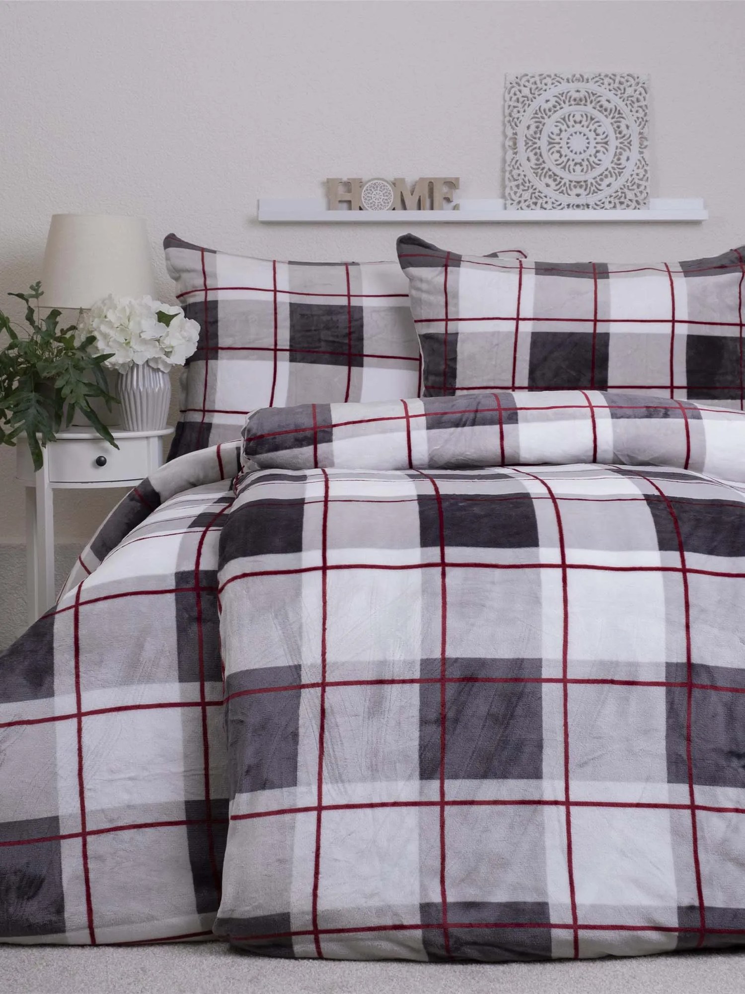 MKLuzkoviny.cz Francúzske obliečky mikroplyš Exclusive – Kocky šedo-červené 220×200cm 70×90cm