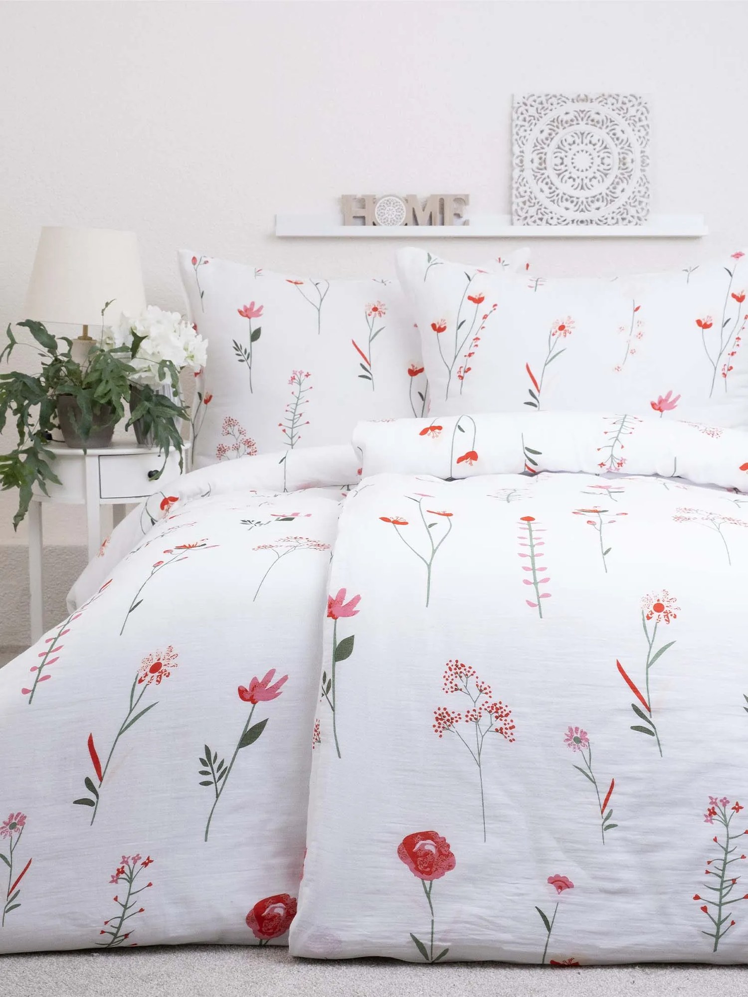 MKLuzkoviny.cz Mušelínové obliečky – Vlčie maky biele 140×200cm 70×90cm