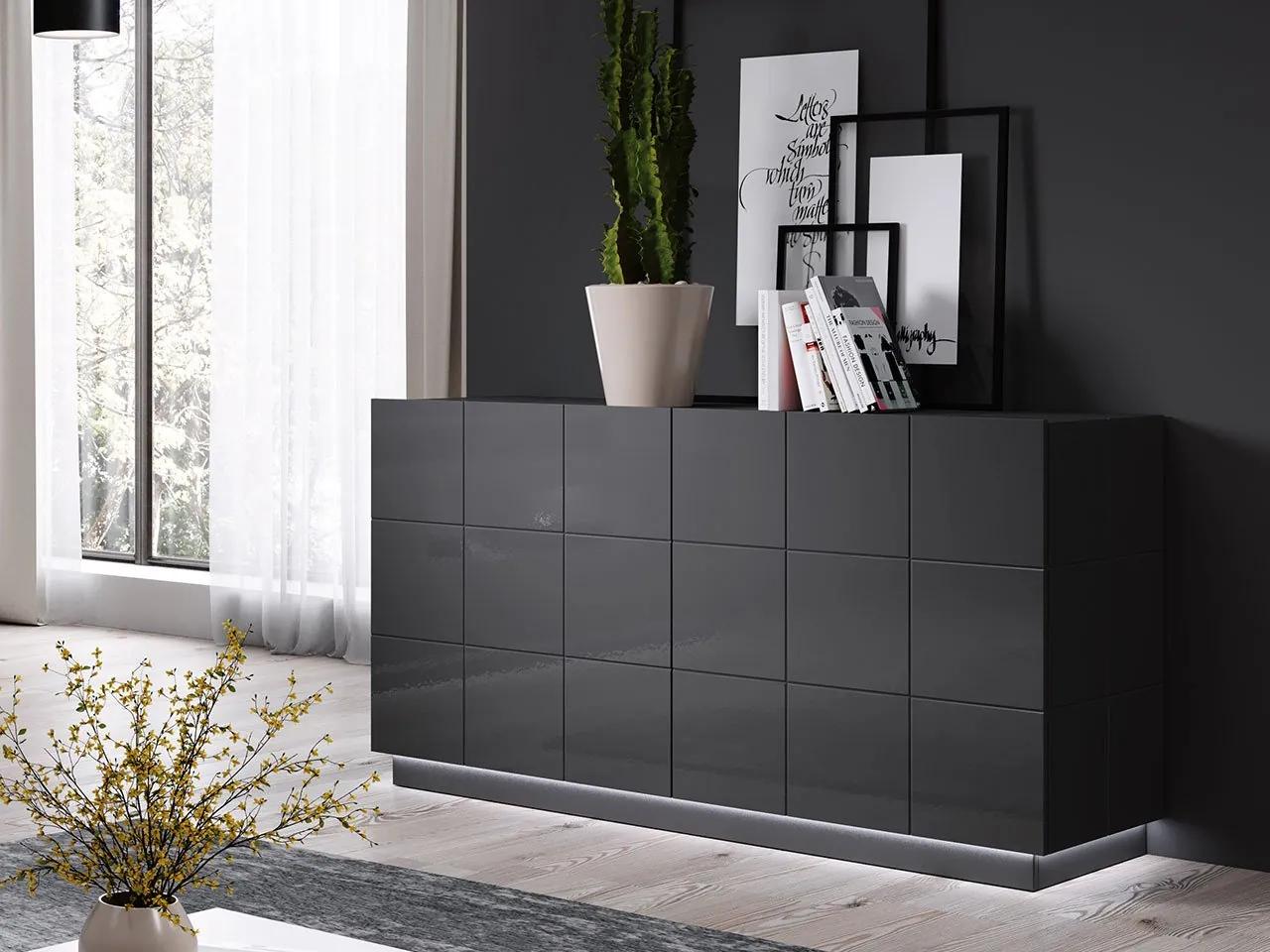Elegantná komoda Parnas 2D zatraktívni dekoráciu obývacej izby, jedálne a spálne. Jej charakteristický znak je daný geometrickým frézovaním čiel. Jednotná farebnosť bola zasa zdôraznená vysokým leskom.Vo vnútri komody sú rady priestranných políc, ktoré možno využiť na uloženie rôznych predmetov. Slávnostný riad, obrusy a dekorácie, to všetko si nájde svoje miesto v tejto modernej komode.Ďalšou výhodou nábytku je možnosť odobrať základňu, na ktorej je komoda umiestnená. Súčasťou zostavy je sokel aj klasické nohy.Rozmery:šírka: 138 cm,výška: 75-80 cm,hĺbka: 45 cmPrevedenie:korpus, front, horná časť: lesklá frézovaná doska MDF,ďalšie prvky: laminovaná doska,žiadne rúčky (čela mierne vyčnievajú nad pracovnú dosku),sada obsahuje čierne plastové nožičky a sokel – zákazník sa rozhodne, ako komodu umiestni pri montáži,LED osvetlenie je k dispozícii za príplatok a závisí od farby nábytku:na biely nábytok – modré osvetlenie,na čierny a grafitový nábytok – biele osvetlenieRozmery produktu sú uvedené v centimetroch a môžu sa líšiť od skutočných ± 3 cm.Rozmery nábytku nemeníme na žiadosť zákazníkovZáruka: 24 mesiacov