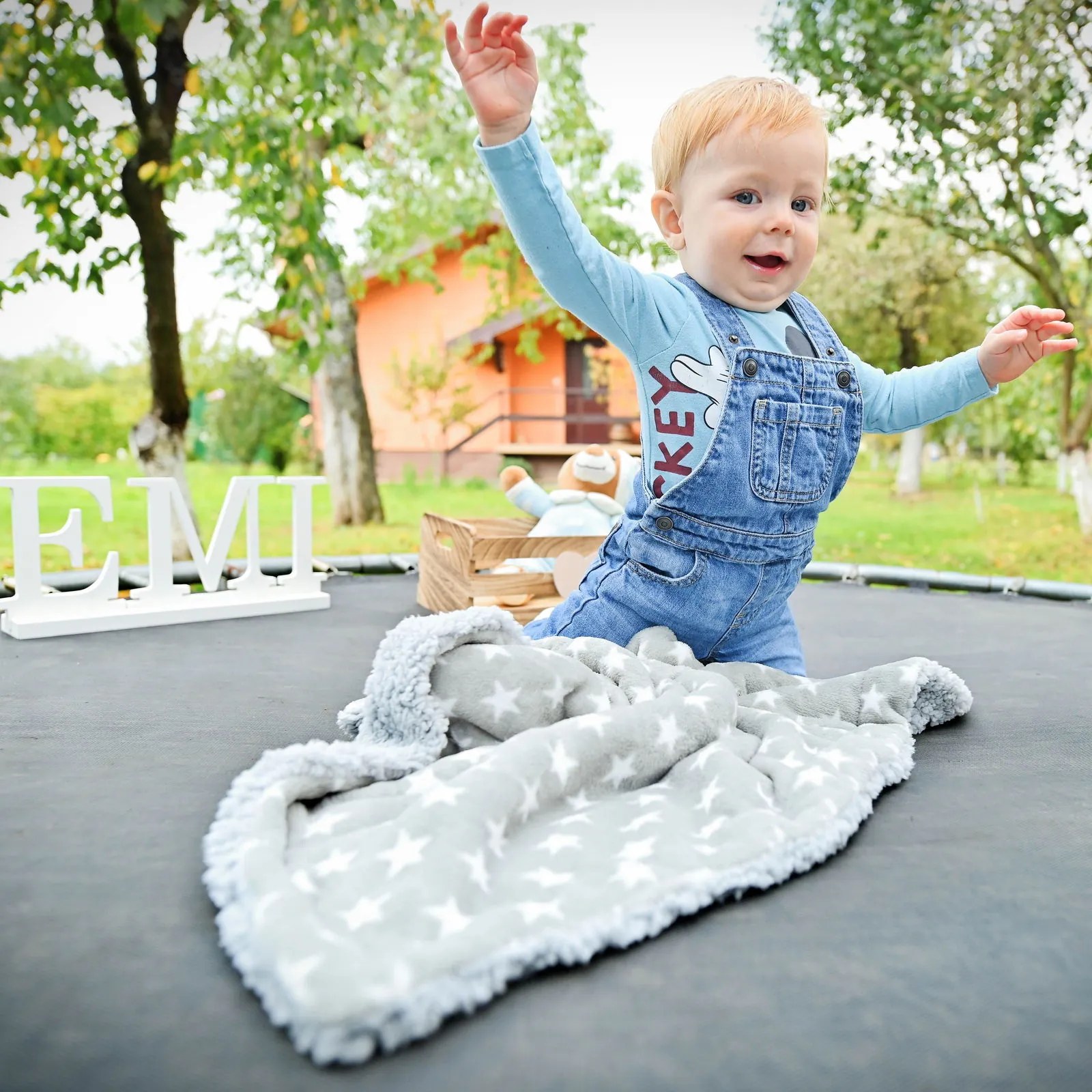 Súčasťou maznáčika na spanie Šťastík je aj jemná, hrejivá a na dotyk veľmi mäkká detská deka s rozmerom 90×75 cm. Poslúži ako prikrývka, deka na hranie či dekorácia. Správna deka pre deti by mala byť dostatočne hrejivá, jemná a mäkká. Medzi hlavné prednosti deky s hračkou patrí aj rýchloschnúca vlastnosť, trvácnosť a mäkkosť. V dekách z mikrovlákna sa nedržia roztoče ani pele, čím sú vhodné aj pre novorodencov.