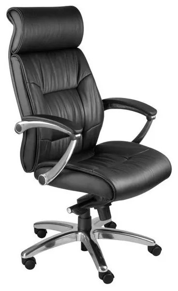Luxusní kožené křeslo s odolným synchronním mechanismem. Bohaté polstrování z měkčené PUR pěny. Područky jsou vyrobeny z leštěného hliníku a spojují sedák s opěrákem. Uživatel si může zvolit požadovanou polohu sklonu křesla. Čalounění v hovězí kůží I. jakosti v barvě černé.
