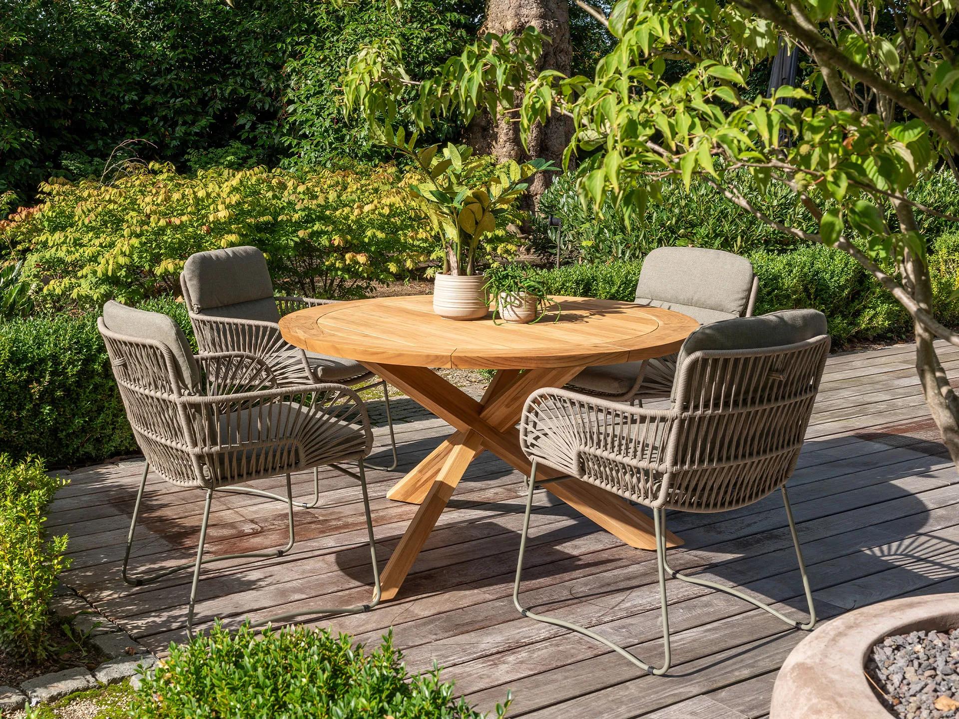Stolová súprava Murcia so svojou olivovou farbou v kombinácii s drevom skvelo zapadne do každého exteriéru.