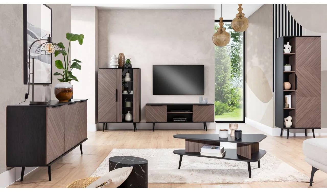Harmonický aranžmán plný štýlu a triedy dodá obývacia zostava Premori I Extrémna praktickosť sa snúbi s nadčasovým vzhľadom. Sada obsahuje prvky, ktoré pomôžu usporiadať celý priestor, ponúkajú sekcie na uloženie a vystavenie predmetov.Nájdete tu širokú komodu a vysokú policu, ktoré sú ako stvorené na uloženie najrôznejších predmetov od dokumentov, cez oblečenie, až po bytový textil. Vitrína zvýrazní krásu úžitkového skla a TV skrinka doplní TV plochu. Súčasťou zostavy je aj konferenčný stolík s nevšedným tvarom, ktorý skvele doplní nábytok v izbe.Rozmery:Komoda Premori K3D PE-01:šírka: 150 cm, výška: 80 cm, hĺbka: 41 cmModerný konferenčný stolík Premori PE-02:šírka: 100 cm, výška: 40 cm, hĺbka: 57 cmR1D Premori PE-03 polica do obývačky:šírka: 70 cm, výška: 190 cm, hĺbka: 41 cmTV skrinka Premori PE-04:šírka: 150 cm, výška: 60 cm, hĺbka: 41 cmVitrína Premori WIT2D PE-05:šírka: 90 cm, výška: 140 cm, hĺbka: 41 cmPrevedenie:korpus a čelá: 16 mm hrubá laminovaná drevotrieskaokraj: ABS (viditeľné miesta), papier (neviditeľné miesta)zadná časť nábytku je vyrobená z HDF dosky hrúbky 3 mm4 mm hrubé tvrdené sklo (vitrína)nohy a rukoväť: čierny kovmiskové pánty so systémom tichého zatváraniapravá čiastočne presklená predná časť nemá úchyt – otvárací systém “PUSH TO OPEN” (Vitrína)Záruka: 24 mesiacovInformácie:Dodávka nezahŕňa zálohu. Vodič doručí vašu objednávku k prvým dverám. Výrobky sú dodávané v balíkoch s návodom na vlastnú montáž. Parametre produktu ako rozmery alebo farby sa nemenia. Tovar dostupný len v konfiguráciách uvedených v ponuke.