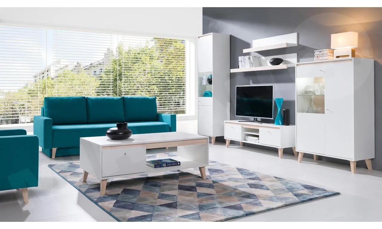 Domů > Obchod > Nábytok Naviedo IV, Farby: biely mat / dub san remo svetlý, Dostupné poťahy: Moric 03, Osvetlenie: osvetlenie LED biele