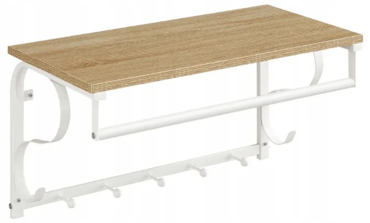 Polica v kombinácii so závesnou tyčou a piatimi háčikmi
