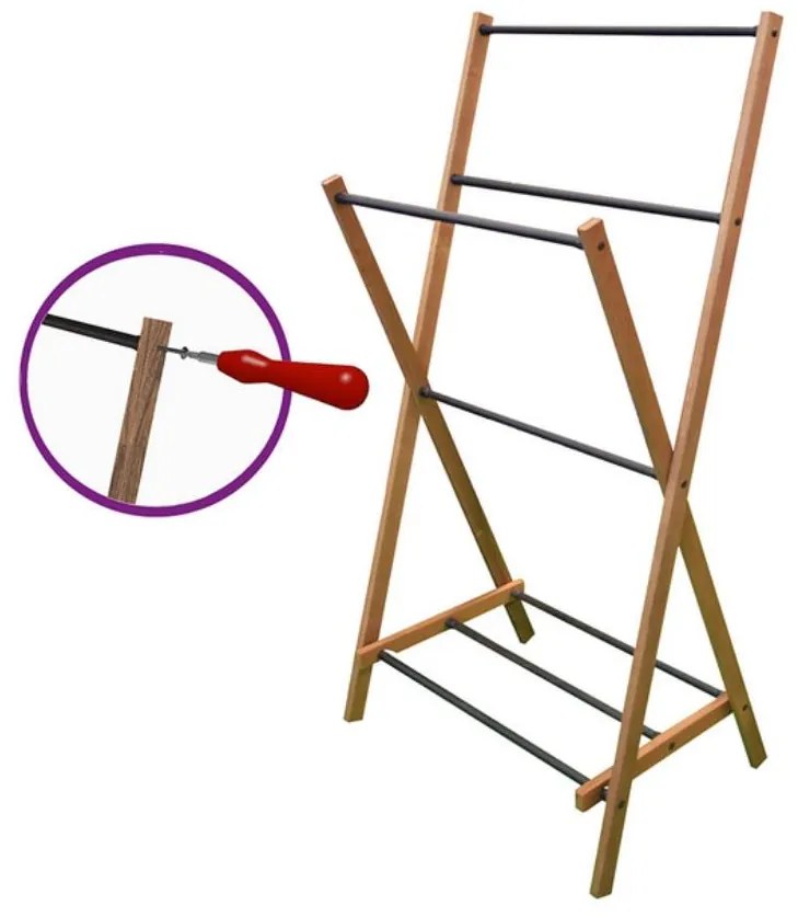 Nemý sluha Scandinavian na svojpomocnú montáž. Ekologický stojan, vyrobený z dreva a ocele.Vďaka našej technológii, ktorá konzervuje drevo bez použitia akýchkoľvek chemikálií, sa nemusíte báť vlhkosti, nízkych či vysokých teplôt. Stojan je proti nim odolný, a pritom bezpečný a neutrálny pre vaše oblečenie aj zdravie.vyrobené z jaseňového dreva s certifikáciou FSCpohodlný skladací systémkompaktnývybavené zámkami, ktoré zabraňujú samovoľnému zloženiu stojana.silne potiahnuté čierne pruhy (1,2 cm).jednoduchá montáž, jasný montážny návod.