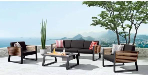 Sedací souprava HIGOLD NEW YORK vychází z designu oblíbené kolekce YORK. Stejně tak je tvořena kombinací tří prvků: hliníkového rámu, teakového dřeva a nátěru, které je v případě kolekce NEW YORK tmavý. Tato sedací souprava působí dominantním a elegantním dojmem. Vynikne v každém exteriéru. Kolekcia NEW YORK vychádza z dizajnu obľúbenej kolekcie YORK.Tak ako jej predchodca, tiež využíva dynamickú kombináciu prírodného tíkoveho dreva a silného rámu. Vynikne v každom exteriéri. Rozmery: trojmiestná pohovka 2200 x 815 x 615 mm2 x kreslo 840 x 815 x 615 mmstolík 1050 x 815 x 410 mm Materiál: Hliník a tíkové drevo Matrace a vankúše sú súčasťou sedačky.