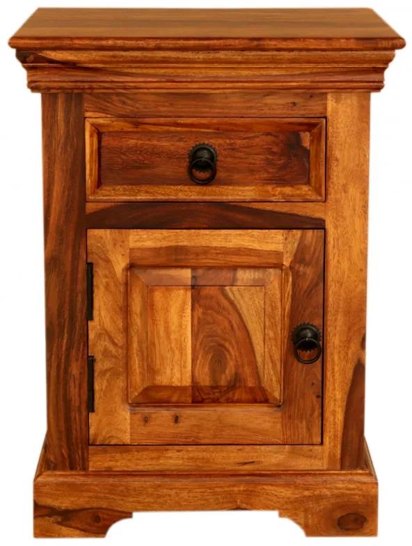 Nočný stolík Jali z masívu je mistrovským kusom nábytku vyrobeným z kvalitného masívneho palisandrového dreva. Jeho jedinečný dizajn zahŕňa jeden štýlový zásuvka a dverká s nádhernými kovovými uchytkami. Tento nočný stolík nie je len praktickým doplnkom do spálne, ale aj umeleckým dielom, ktorý prinesie do vášho interiéru exotický šarm a eleganciu. Zvoľte si nočné stolíky z masívu palisandru a urobte zo svojej spálne miesto pohodlia a krásy, ktoré vás bude ohromovať.