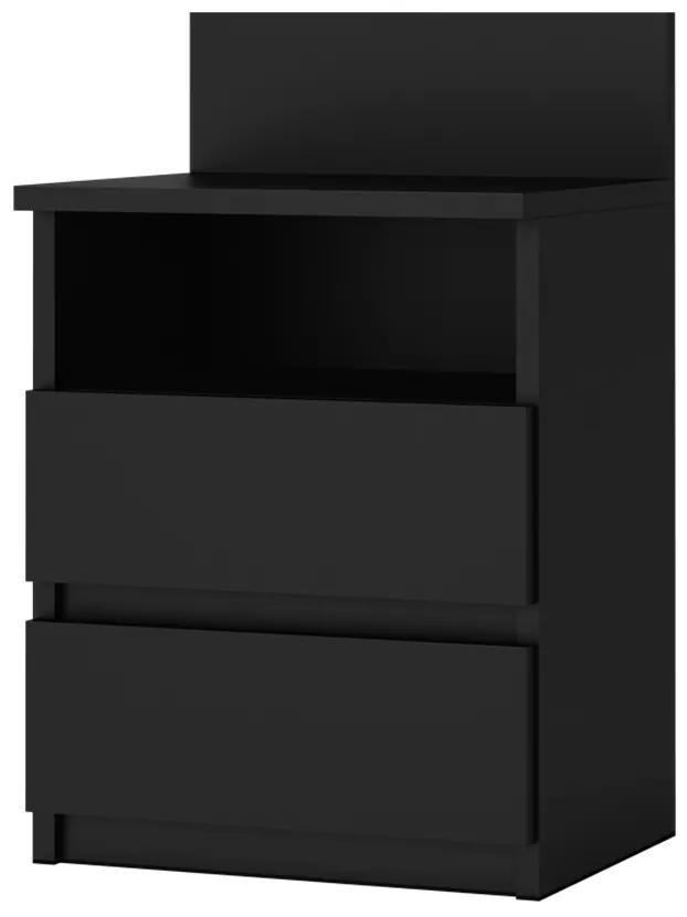 Nočný stolík Ponta 1 (čierna) s výškou 59 cm a hĺbkou 32 cm je skvelým doplnkom každej spálne. Jeho jednoduchý dizajn skvele ladí so všetkými interiérmi. Stolík má otvorenú poličku, kde si môžete uložiť svoju obľúbenú knihu pre pred spaním, alebo pohár s vodou. Okuliare tu nájdu svoje miesto tiež. Dve praktické zásuvky Vám umožnia uschovať osobné veci a udržať poriadok. Stolík je vyrobený z laminovanej drevotriesky a má fronty bez úchytov a hladké boky bez záslepiek. Zásuvky majú guľôčkový výsuv. S rozmormi balíka 12x58x37 cm je nočný stolík Ponta 1 ľahko zostaviteľný.