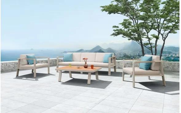 Sedací souprava HIGOLD NOFI představuje jemnost, pohodlí a klid. Celá kolekce NOFI je tvořena tak, aby vyhověla veškerým vašim nárokům. Kolekce se skládá ze sedací soupravy, jídelní soupravy, barového setu, lehátka i houpačky. Sedací souprava je vyrobena z hliníkového rámu s bílým nátěrem a komfortních matrací. Užijte si jedinečné pohodlí a božský klid! Kolekcia Nofi pozostáva zo sedacej súpravy, modulárnej sedacej súpravy, jedálenskej súpravy, barového setu, ležadla a hojdačky. Je to jedna z kolekcií, ktorá má kompletnú zostavu, aby vyhovela všetkým druhom životných nárokov. S drevenými elementmi, ktoré sú inštalované na podrúčkach a stolových doskách a s jemnými, vzdušnými matracmi, Nofi ukazuje jednoduchosť ale nikdy nestráca svoju pohodlnosť. Rozmery: Stolík 120 x 70 cmTrojsedačka 81 x 220 cm 2x Kreslo 81 x 80 cm Materiál: Hliník Matrace a vankúše sú súčasťou sedačky