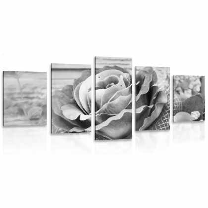 5-dielny obraz elegantná vintage ruža v čiernobielom prevedení