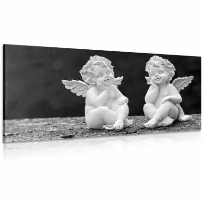 Obraz dvojica malých anjelov v čiernobielom prevedení