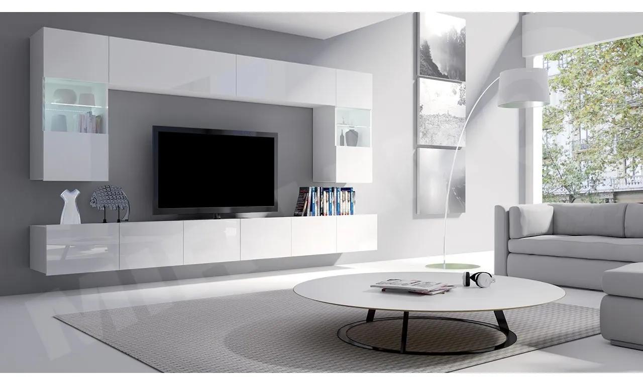 Obývacia stena Bralani I sa skladá až zo 6 elementov, ako sú 2 TV skrinky, 2 závesné vitríny a 2 závesné police. Dvierka obývacej steny sú vyrobené vo vysokom lesku v klasických farebných prevedeniach biela a čierna. Skrinky nemajú úchytky. Ďalšou možnosťou je LED osvetlenie, ktoré krásne osvetlí interiér miestnosti.TV skrinku je možné pripevniť ako závesnú skrinku a po namontovaní nožičiek ju môžete použiť ako stojaciu skrinku. Všetky elementy je možné umiestniť tak, ako Vám to vyhovuje. Obývacia stena Bralani I je vyrobená vo vysokej kvalite elementov a materiálov.Uvedená cena zahrňuje nasledujúce komponenty:TV skrinka Bralani 150 BR04: šírka: 150, výška: 37, hĺbka: 43 x 2ksPolice Bralani BR02: šírka: 105, výška: 35, hĺbka: 32 x 2ksZávesná vitrína Bralani BR05: šírka: 45, výška: 117, hĺbka: 32 x 2ksPrevedenie:korpus – laminovaná drevotriesková – 16mm,dvierka – laminovaná drevotriesková – 15mm,tv skrinka môže byť voľne stojaca (nôžky – strieborné – 5cm) alebo je možné ju zavesiť na stenu,hrany PVC,kalené sklo,bez úchytiek,s možnosťou dokúpenia LED osvetlenia studené biele alebo modré,súčasťou zostavy sú pliešky k montáži na stenu, ale súčasťou nie sú montážne hmoždinkyZáručná doba: 24 mesiacov