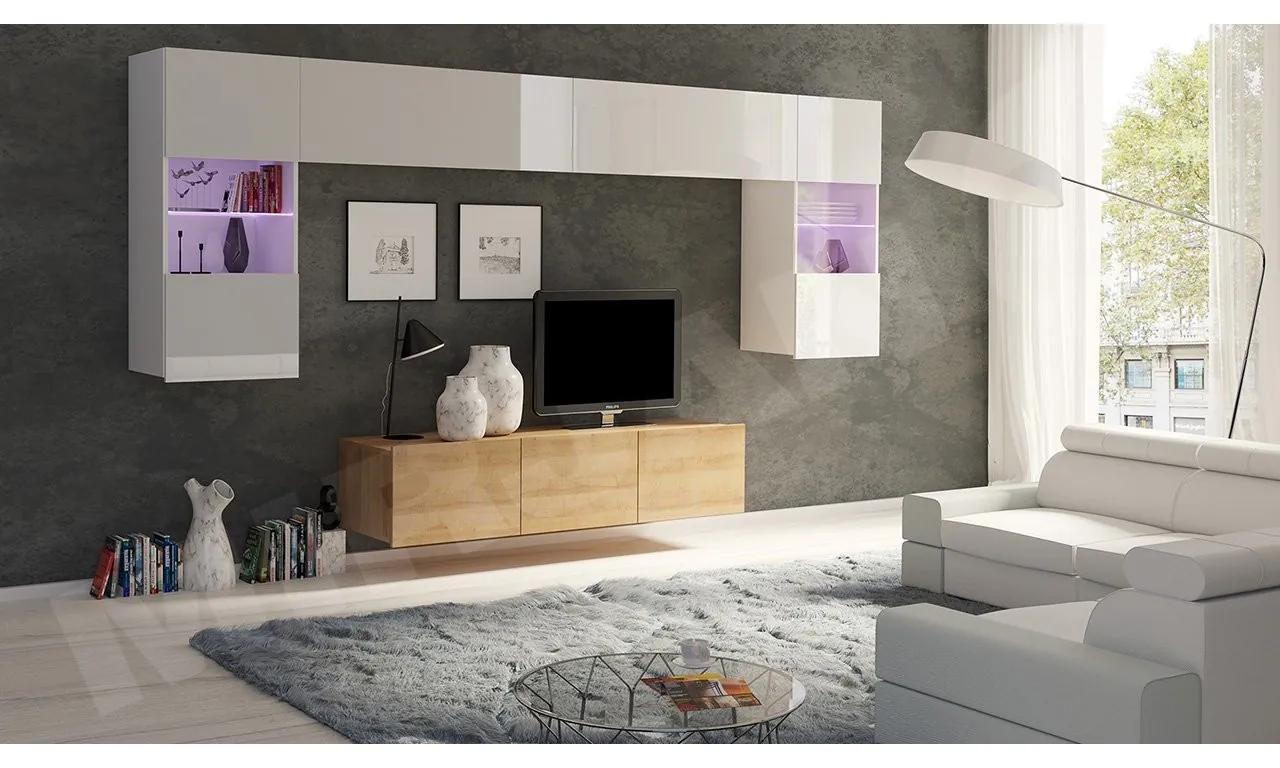 Snívate už dlho o modernej obývačke, ktorá poteší vás aj vašich hostí?Ste bližšie k splneniu, než si myslíte.Moderná obývacia stena z kolekcie Bralani je nábytková zostava, ktorá vám splní sen za skvelú cenu.Odteraz môže vaša obývacia izba očariť vašich hostí žiarivými farbami a originálnym usporiadaním, ktoré nikdy nestálo ani vedľa nudy.Nástenná zostava Bralani II však nie je len prestížnym vzhľadom, ale aj osvedčenou kvalitou spracovania. Napríklad jej hrany boli chránené materiálom PVC, čo znamená, že náraz na nich nezanechá stopu.Okrem farby si môžete vybrať, či má RTV skrinka stáť alebo visieť.Je to výlučne vaše rozhodnutie, ktoré môžete kedykoľvek zmeniť.Uvedená cena zahrňuje nasledujúce komponenty:TV skrinka Bralani 150 BR04: šírka: 150, výška: 37, hĺbka: 43 x 1ksPolice Bralani BR02: šírka: 105, výška: 35, hĺbka: 32 x 2ksZávesná vitrína Bralani BR05: šírka: 45, výška: 117, hĺbka: 32 x 2ksFarby: možnosť výberu farieb tuVyrobené:korpus – laminovaná drevotriesková – 16mm,dvierka – laminovaná drevotriesková – 15mm,tv skrinka môže byť voľne stojaca (nôžky – strieborné – 5cm) alebo je možné ju zavesiť na stenu,hrany PVC,kalené sklo,bez úchytiek,s možnosťou dokúpenia LED osvetlenia studené biele alebo modré,súčasťou zostavy sú pliešky k montáži na stenu, ale súčasťou nie sú montážne hmoždinkyZáručná doba: 24 mesiacov