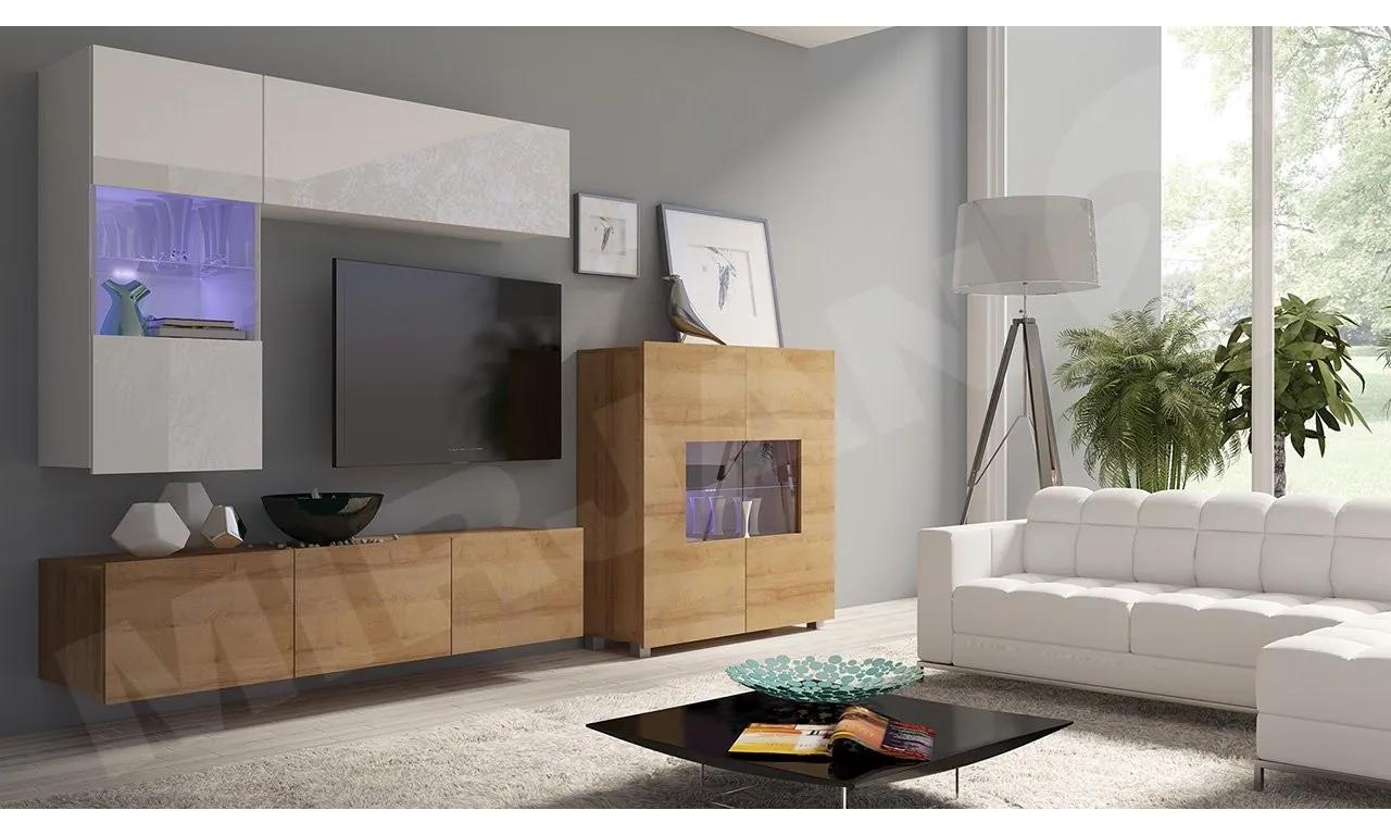 Domů > Obchod > Obývacia stena Bralani III, Farby: dub zlatá / biely + biely lesk, Osvetlenie: bez osvetlenia