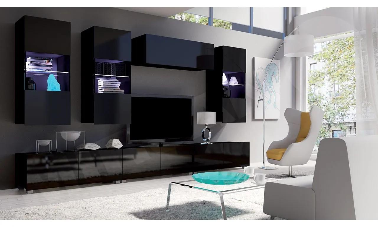 Domů > Obchod > Obývacia stena Bralani XI, Farby: čierny / čierny lesk, Osvetlenie: osvetlenie LED modré