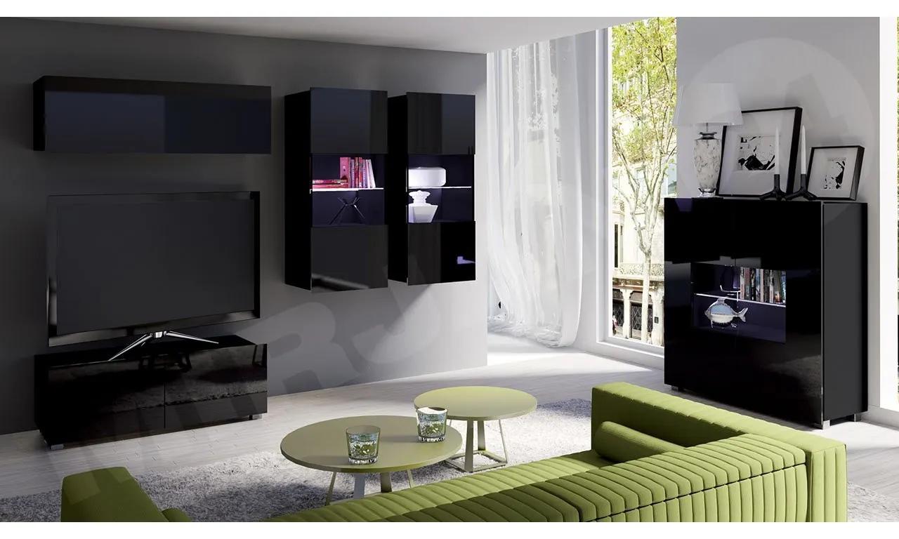Domů > Obchod > Obývacia stena Bralani XII s komodou, Farby: čierny / čierny lesk, Osvetlenie: osvetlenie LED modré
