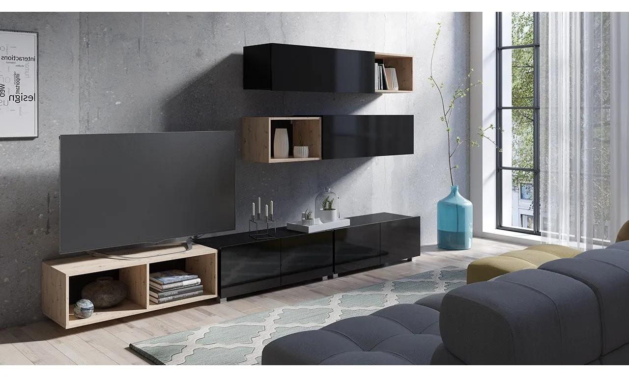 Bralani XXV je obývacia stena, ktorá sa vyznačuje moderným a dizajnovým vzhľadom. V obývacej izbe bude určite užitočná široká škála priestranných úložných priestorov, ako aj spoločenská miestnosť pre všetkých členov rodiny.Televízna skrinka aj závesné police majú priestranný vnútorný priestor, vďaka čomu získate praktické skrinky na akékoľvek predmety.Dostupné farby sú v súčasnosti najmódnejšie farebné možnosti, ktoré dobre ladia s interiérom zariadeným v akomkoľvek usporiadaní.Rozmery prvkov súpravy:Závesná polica Bralani BR02: – x 2,šírka: 105 cm, výška: 35 cm, hĺbka: 32 cm,Televízna skrinka Bralani 100 BR03: – x 2,šírka: 100 cm, výška: 37 cm, hĺbka: 43 cm,Závesná polica 50 Bralani BR14: – x 2,šírka: 50 cm, výška: 33 cm, hĺbka: 30 cm,Závesná polica 100 Bralani BR15:šírka: 100 cm, výška: 31 cm, hĺbka: 41 cmprevedenie:korpus: 16 mm laminovaná drevotrieska,fronty: 15 mm laminovaná drevotrieska,Hrana z PVC na prednej stranebez úchytiek,Televízna jednotka a polica BR14 / 15 sú univerzálnym prvkom – stojace (5cm strieborné nohy) alebo závesné,platne na pripevnenie skriniek k stene v súprave, žiadne montážne kolíky (zákazník si musí kúpiť vlastné)Záruka: 24 mesiacov